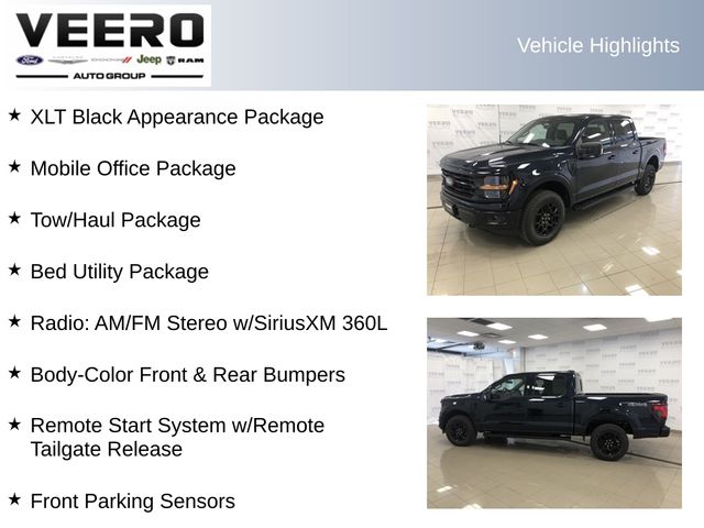 XLT, 4x4, XLT Black Appearance Package, Mobile Office Package, 6" Black Running Boards, Adaptive Cruise Control w/Stop & Go, Bed Utility Package, Body-Color Front & Rear Bumpers, Console Worksurface, Electronic Locking w/3.55 Axle Ratio, Front & Rear Parking Sensors, Integrated Trailer Brake Controller, LED Box Lighting, AM/FM Stereo w/SiriusXM 360L, Remote Start System w/Remote Tailgate Release, Tailgate Step w/Tailgate Work Surface, Tow/Haul Package, Unique Heated Sport Cloth 40/Console/40 Front-Seats, Wheels: 18" Gloss Black.