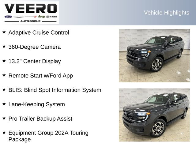 Adaptive Cruise Control, 360-Degree Camera, 13.2" Center Display, Remote Start w/Ford App, BLIS: Blind Spot Information System, Lane-Keeping System, Pro Trailer Backup Assist, 26mm Engine Radiator, 360-Degree Zone Lighting, ActiveX-Trimmed Front Heated Captain's Chairs, Apple CarPlay/Android Auto, Equipment Group 202A Touring Package, Exterior Parking Camera Rear, Flex Powered Console, Ford Split Gate, Heated Steering Wheel, Heavy-Duty Trailer Tow, Integrated Trailer Brake Control, Intersection Assist, Memory Driver Seat, Power Tilt/Telescopic Steering Wheel with Memory, Pro Power Onboard - 400W, Wheels: 20" x 8.5" Bright Machined Aluminum.