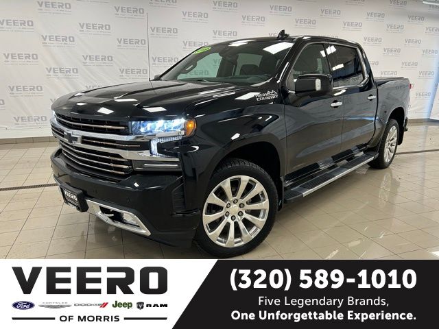 Veero Ford & CDJR of Morris is proud to offer this stout 2019 Chevrolet Silverado 1500 High Country in Black, beautifully equipped with High Country Deluxe (All-Weather Floor Liner (LPO) and Power Sunroof), Preferred Equipment Group 3LZ (10-Way Power Driver Seat w/Lumbar, 10-Way Power Passenger Seat Adjuster w/Lumbar, 12-Volt Rear Auxiliary Power Outlet, 120-Volt Bed Mounted Power Outlet, 120-Volt Instrument Panel Power Outlet, 170 Amp Alternator, 2nd Row Heated Outboard Seats, 8" Driver Information Center, Advanced Trailering System, Auto-Dimming Inside Rear-View Mirror, Auxiliary External Transmission Oil Cooler, Bluetooth® For Phone, Chevrolet Connected Access, Chevrolet w/4G LTE, Chevytec Spray-On Black Bedliner, Chrome Assist Steps, Chrome Grille, Chrome Recovery Hooks, Color-Keyed Carpeting Floor Covering, Compass, Deep-Tinted Glass, Driver Memory, Dual Exhaust w/Polished Outlets, Electric Rear-Window Defogger, Electrical Lock Control Steering Column, Electronic Cruise Control, Floor Mounted Console, Front Carpeted Floor Mats, Front LED Fog Lamps, HD Radio, HD Rear Vision Camera, Heated Driver & Front Passenger Seats, Heated Steering Wheel, Heavy-Duty Rear Locking Differential, Hitch Guidance, Hitch Guidance w/Hitch View, Integrated Trailer Brake Controller, Keyless Open & Start, Lane Change Alert w/Side Blind Zone Alert, Leather Wrapped Steering Wheel, LED Cargo Area Lighting, Manual Tilt/Telescoping Steering Column, OnStar & Chevrolet Connected Services Capable, Outside Heated Power-Adjustable Mirrors, Painted Mirror Caps, Power Door Locks, Power Front Passenger Windows w/Express Up/Down, Power Front Windows w/Driver Express Up/Down, Power Rear Windows w/Express Down, Power Sliding Rear Window w/Rear Defogger, Rear Carpeted Floor Mats, Rear Cross Traffic Alert, Rear Dual USB Charging-Only Ports, Rear Wheelhouse Liners, Remote Vehicle Starter System, SiriusXM Radio, Steering Wheel Audio Controls, Theft Deterrent System (Unauthorized Entry), Trailer Tire Pressure Monitor System, Ultrasonic Front & Rear Park Assist, Universal Home Remote, Ventilated Driver & Front Passenger Seats, and Wireless Charging), Safety Package II (Following Distance Indicator, Forward Collision Alert, Front Pedestrian Braking, IntelliBeam Automatic High Beam On/Off, Lane Keep Assist w/Lane Departure Warning, Low Speed Forward Automatic Braking, and Safety Alert Seat), Technology Package (15" Diagonal Head-Up Display, HD Surround Vision, and Rear Camera Mirror), Trailering Package, Up-Level Rear Seat w/Storage Package, 8-Speed Automatic, 4WD, Jet Black/Umber Leather, 3.23 Rear Axle Ratio, 4-Wheel Disc Brakes, 7 Speakers, ABS brakes, Air Conditioning, Alloy wheels, AM/FM radio: SiriusXM, Apple CarPlay/Android Auto, Auto-dimming door mirrors, Auto-dimming Rear-View mirror, Automatic temperature control, Brake assist, Bumpers: body-color, Cooled Seats, Delay-off headlights, Driver door bin, Driver vanity mirror, Dual front impact airbags, Dual front side impact airbags, Electronic Stability Control, Front anti-roll bar, Front Black Bowtie Emblem (LPO), Front Bucket Seats, Front Center Armrest w/Storage, Front dual zone A/C, Front fog lights, Front License Plate Kit, Front reading lights, Front wheel independent suspension, Fully automatic headlights, Garage door transmitter, Heated door mirrors, Heated front seats, Heated rear seats, Heated steering wheel, Heavy Duty Suspension, Illuminated entry, Low tire pressure warning, Memory seat, Navigation System, Occupant sensing airbag, Outside temperature display, Overhead airbag, Overhead console, Panic alarm, Passenger door bin, Passenger vanity mirror, Perforated Leather Appointed Seat Trim, Power door mirrors, Power driver seat, Power passenger seat, Power steering, Power windows, Premium audio system: Chevrolet Infotainment System 3, Radio data system, Radio: Chevrolet Infotainment 3 Premium System, Rear reading lights,