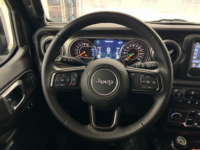 The Wrangler's iconic design is complemented by practical features like automatic headlamps, power-heated mirrors, and a rear window defroster. Stay comfortable with automatic climate control, while the leather-wrapped steering wheel and driver-focused controls provide a premium touch.